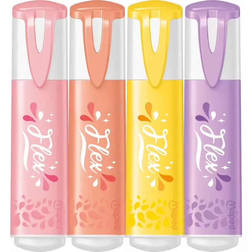 🌸 Pochette 4 Surligneurs Maped Fluo’peps Flex Pastel ✨ – Douceur & Confort d’Écriture 🌈